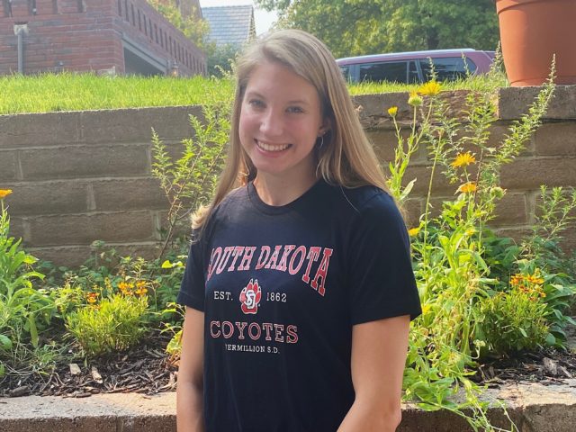 High school senior Christina Spomer from Omaha, Nebraska will swim at the University of South Dakota beginning in the fall of 2021.